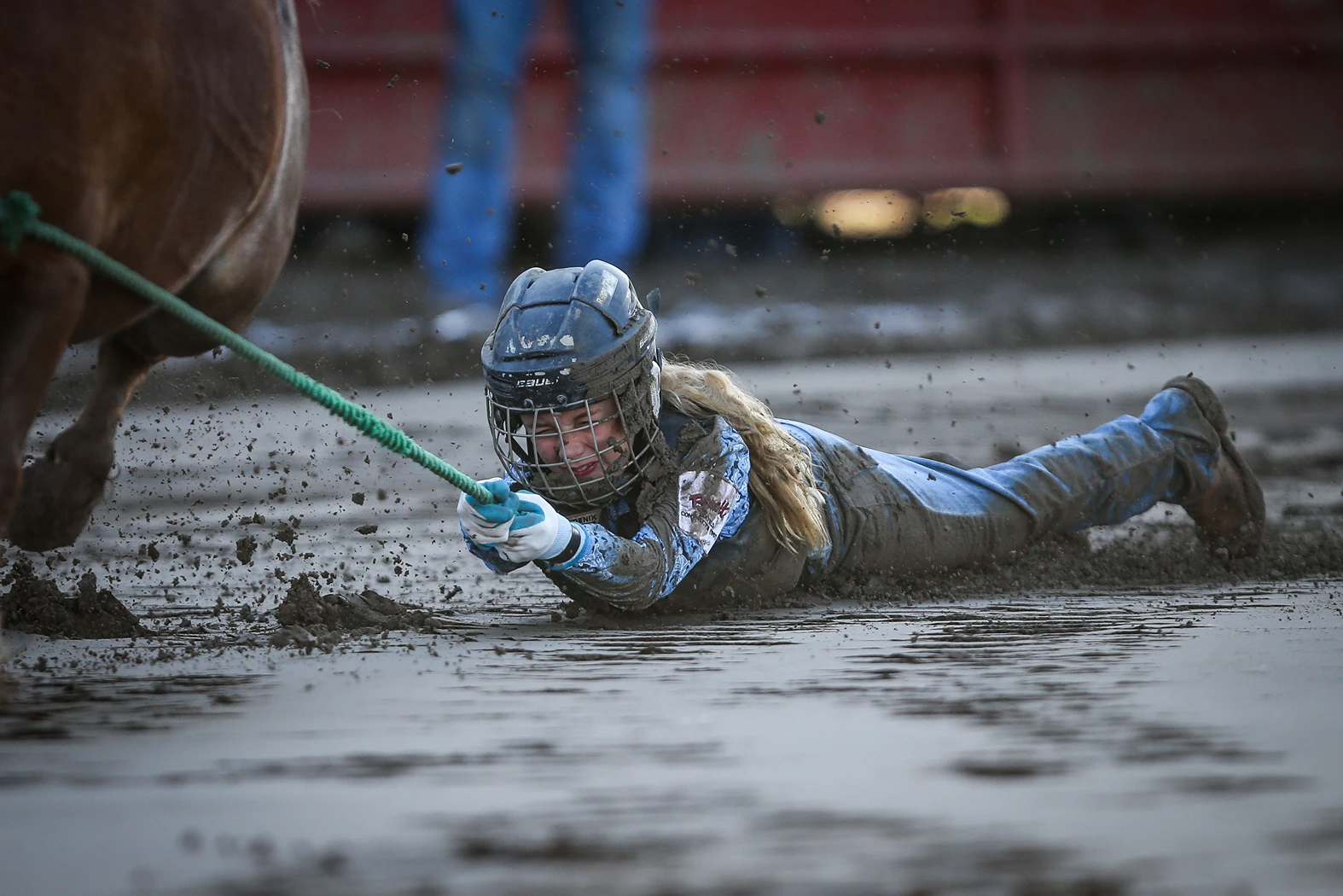 The only ladies’ event in professional rodeo, the contestant and her horse must cross the scoreline, run a clover-leaf pattern around three barrels then head back across the scoreline to achieve a time.